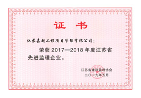 江蘇嘉越工程項目管理有限公司成立于1997年,擁有房屋建筑工程監(jiān)理甲級資質,市政公用工程監(jiān)理甲級資質。擁有GB/T19001-ISO9001質量管理體系認證證書。是江蘇省項目管理、全過程工程咨詢試點企業,是江蘇省“優(yōu)秀監(jiān)理企業”、“先進監(jiān)理企業”。是江蘇建設招投標與監(jiān)理協會常務理事單位,常州市建設監(jiān)理協會會長單位。